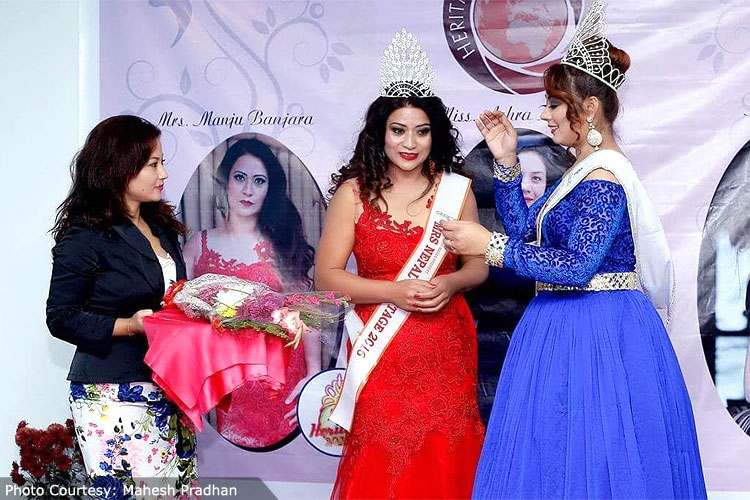 Newly crowned 19 years of age Miss Teen Heritage Nepal Srijana Pun is a student of Environmental science studying at Golden Gate International College while 24 years of age Miss Heritage Nepal Ashra Kunwar is a singer and a lyricist, also the student of Environmental science, while 40 years of age Mrs. Heritage Nepal Manju Banjara Dhakal is a fashion designer by profession.