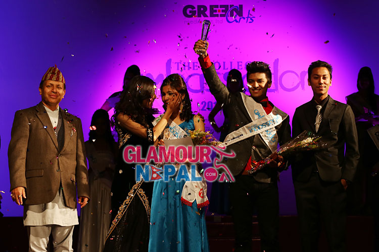 Glamour Nepal, Kathmandu – The sixth season of ‘The College Ambassador’ event has come to an end. With 19 contestants participating in the competition, the student of Ace institute of management, Akesh Tamrakar and the student of Golden Gate international college, Jyonita Karki became the new faces for ‘The College Ambassador 2013-14′. The event showcased at Rastriya Naachghar, Jamal on 22nd of March 2014 was been organized by Green Arts Media Pvt Ltd. Event choreographed by Anila Shrestha did saw the popular faces like Nagma Shrestha, Malina Joshi, Anup Bikram Shahi, Nirnaya Shrestha on the front row as the judges .
