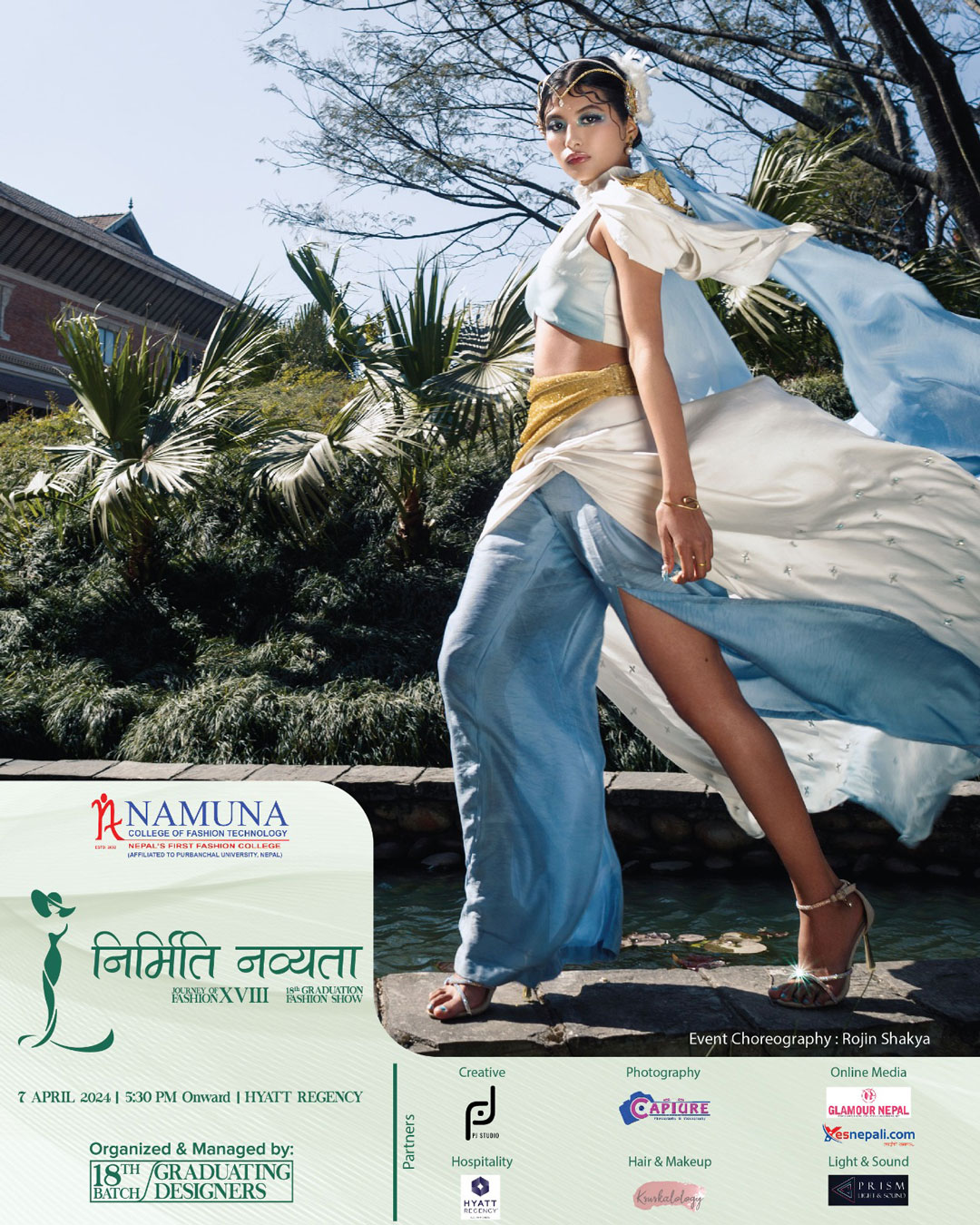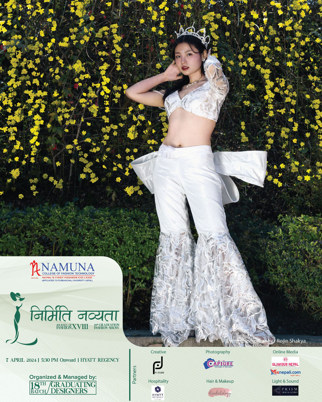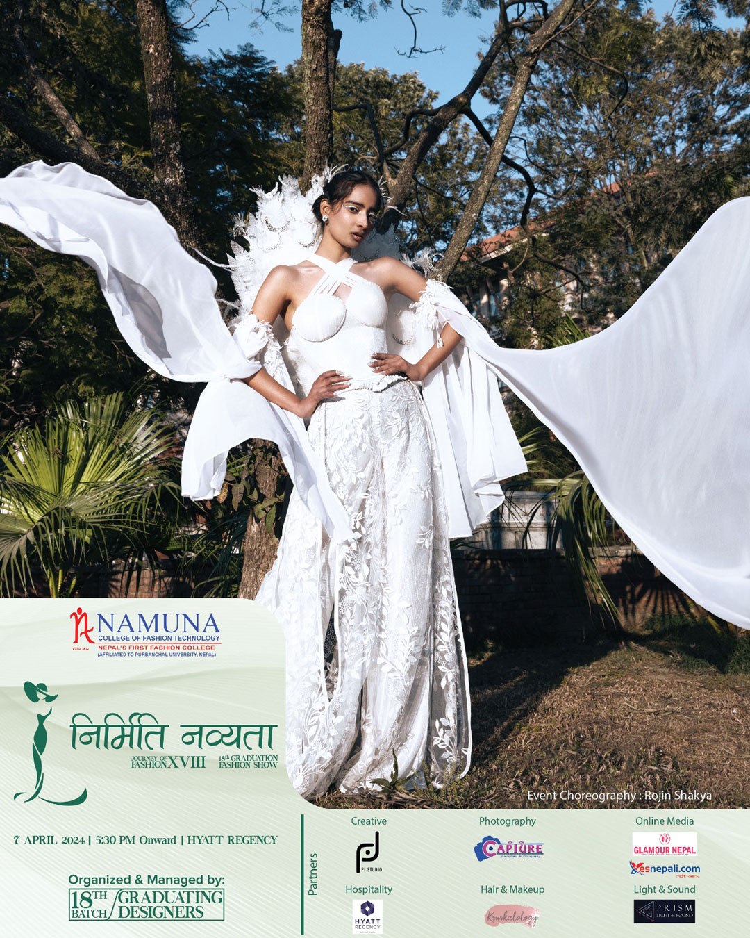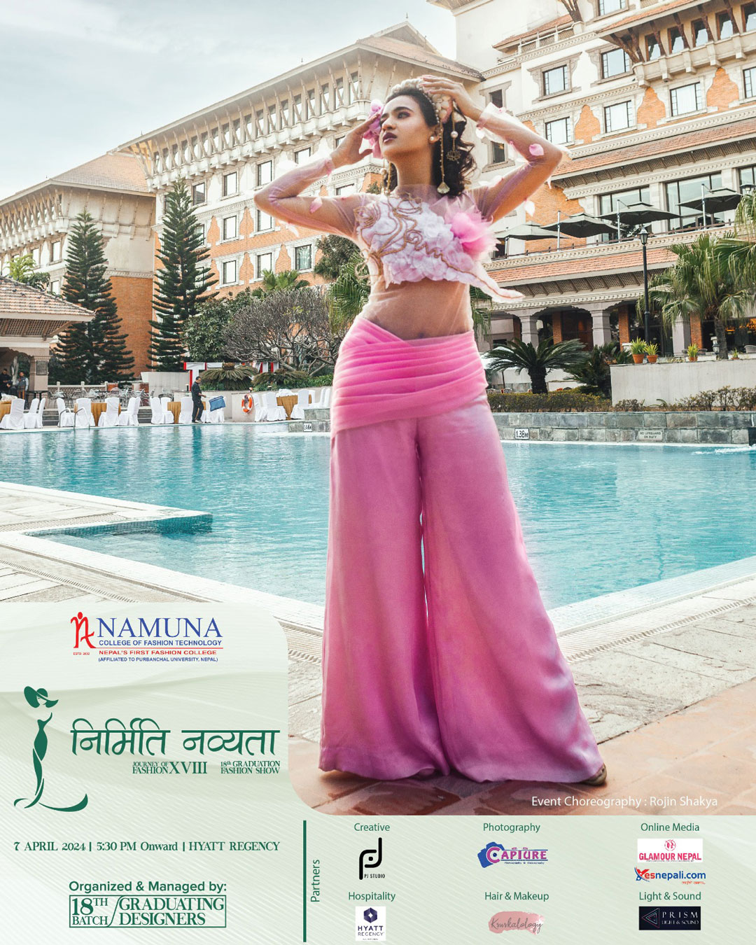 The stunning display of creativity, innovation and imagination under the 18th graduation fashion show of Namuna College of Fashion Technology would come alive on 7th of April 2024. A spectacular visual treat of fashion and style would be showcased at Hyaat Regency, Boudha, Kathmandu.