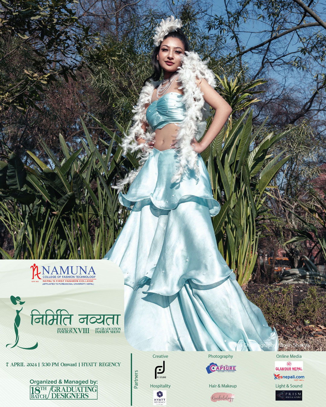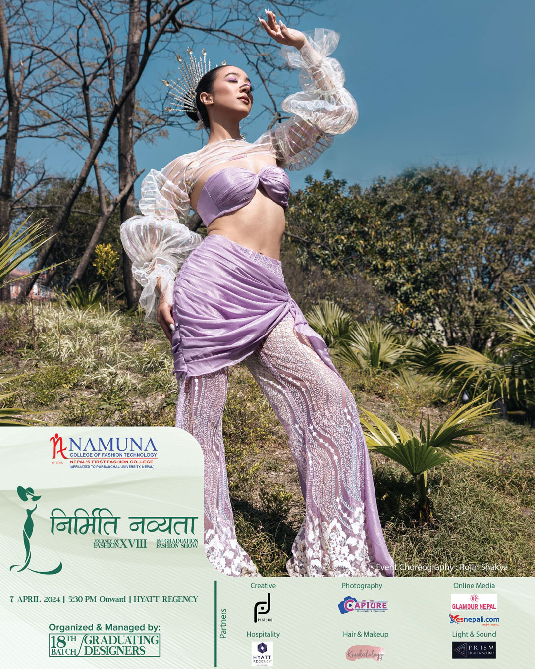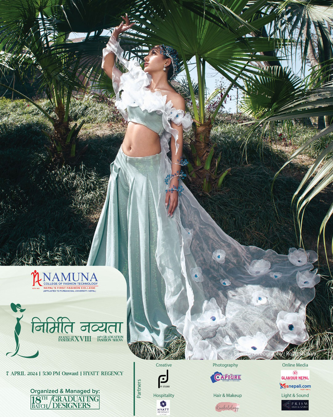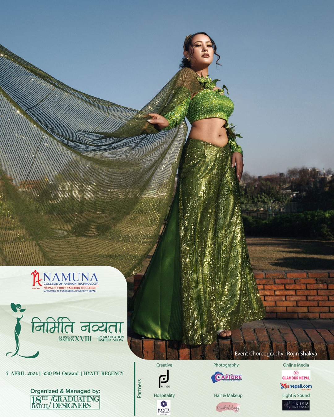 The stunning display of creativity, innovation and imagination under the 18th graduation fashion show of Namuna College of Fashion Technology would come alive on 7th of April 2024. A spectacular visual treat of fashion and style would be showcased at Hyaat Regency, Boudha, Kathmandu.