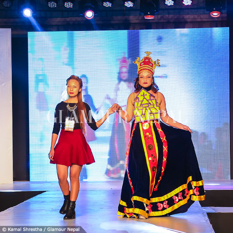 The dress is inspired from the typical cultural and architectural heritage of Norway, which is well known for its natural attraction and stunning vibrant cultural life.