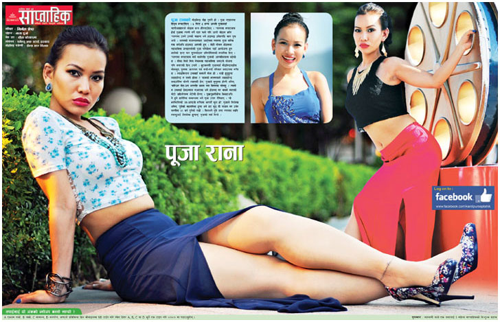 Model Pooja Rana featured in mid page poster of popular entertaining weekly paper Kantipur Saptahik, published on 31st of October 2014. Pooja rana is Hongkong based Nepali model. Photos Courtesy: Nirmal Shrestha / ekantipur