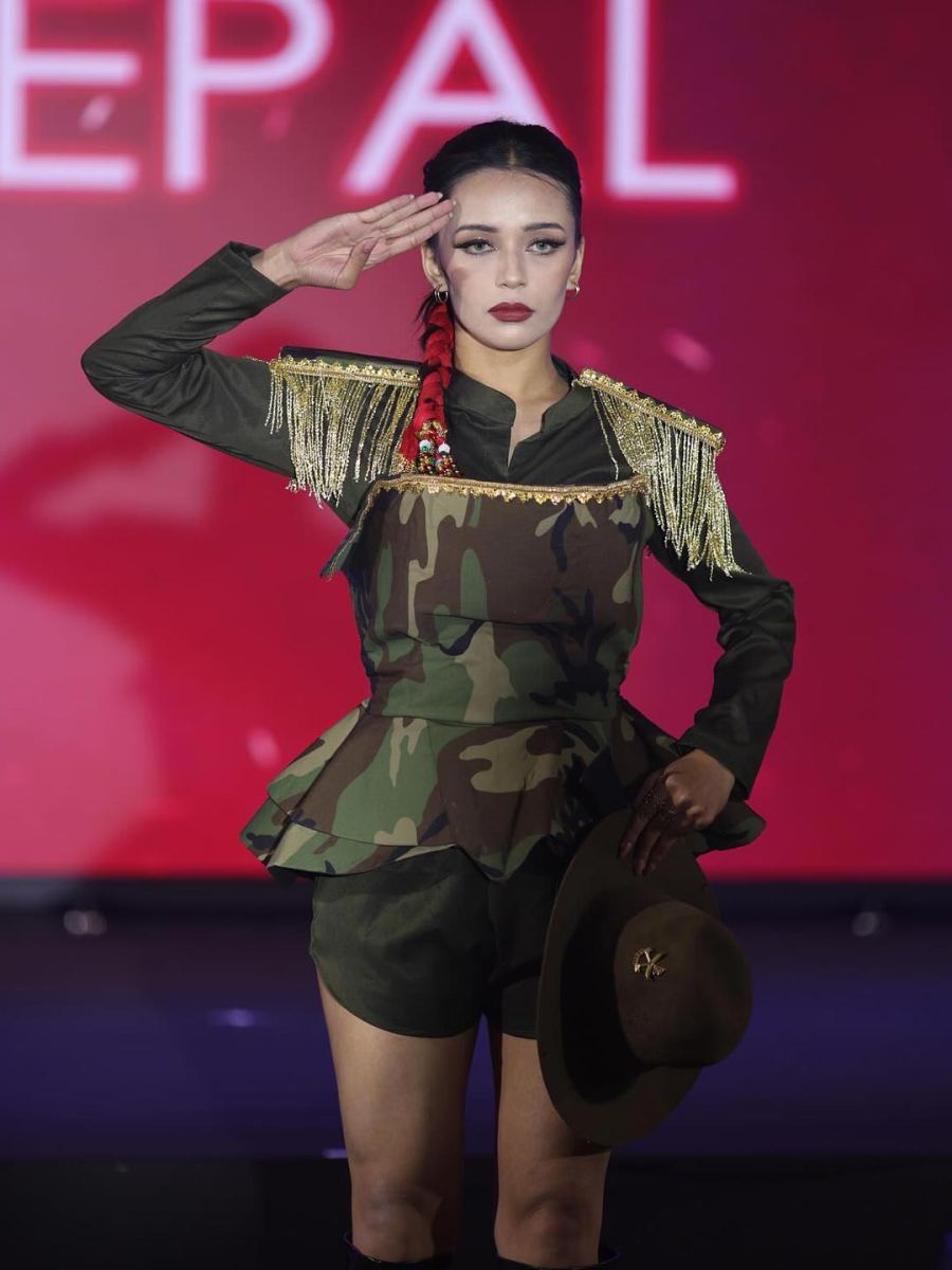 Representing Nepal with heart and determination, Prapti captivated audiences with her fierce confidence and graceful charm. Her performances and interviews beautifully reflected Nepal’s cultural essence while radiating modern sophistication earning admiration from both judges and fans.