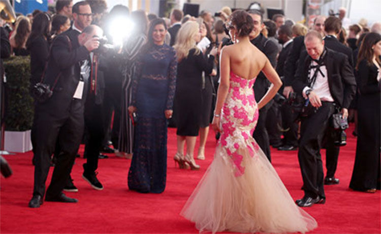 Her pink lipstick perfectly matched the details on the dress. The 33-year-old Indian actress/singer and former Miss World is almost too pretty to look at.