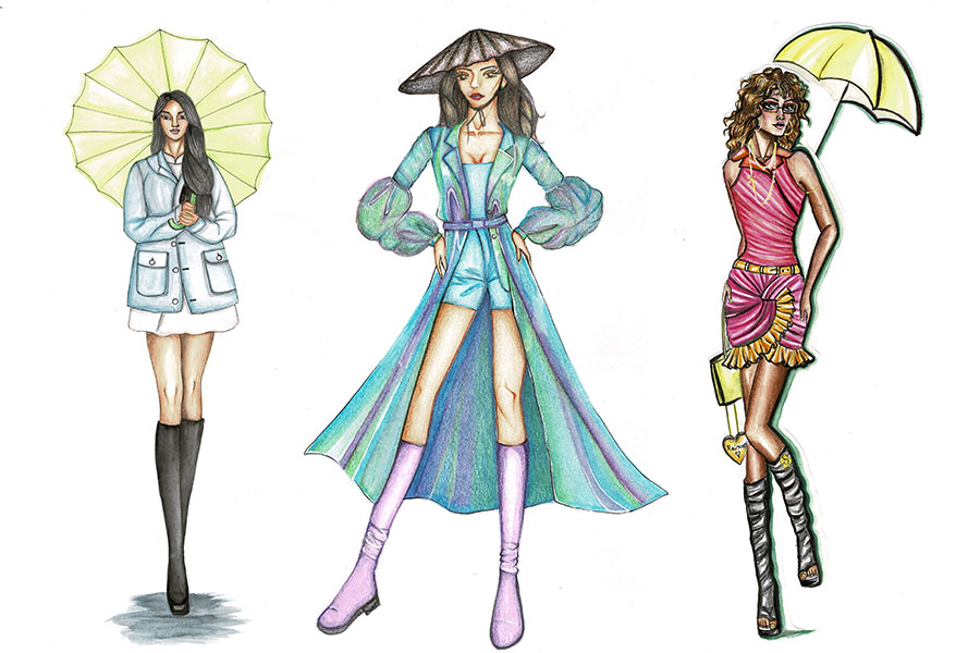 What follows is a curate selection of the top ten design concepts and writes ups themed around monsoon attire. These were developed as part of a 10 days’ workshop on fashion journalism, guided by media personality and fashion choreographer Rojin Shakya.