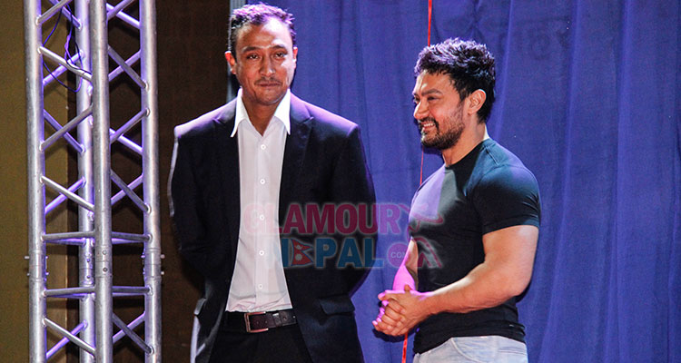 Paras Khadka and Aamir Khan During a function in Kathmandu on Thursday. Photo Courtesy: Satyan Shrestha