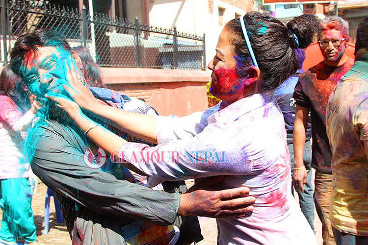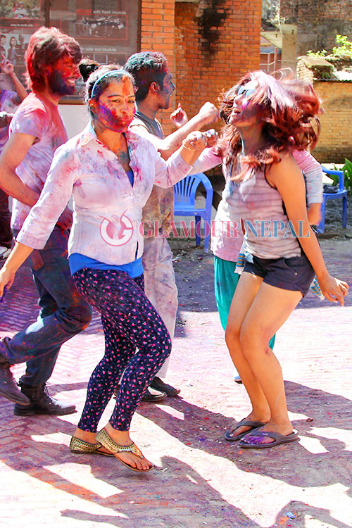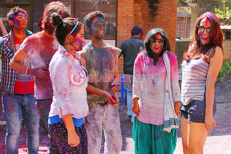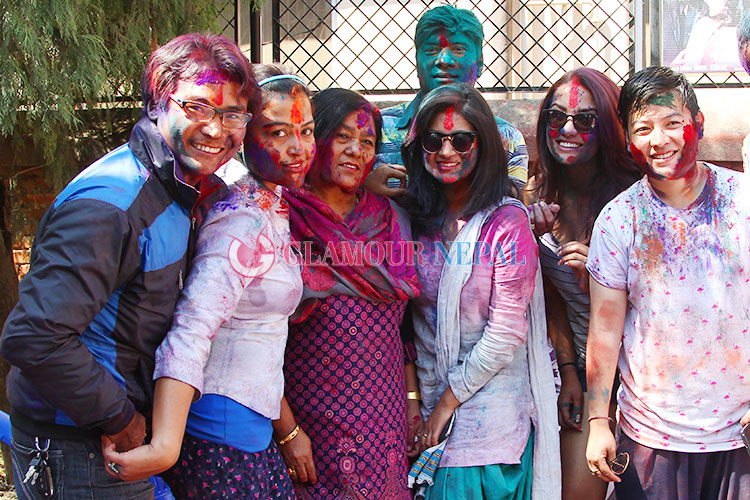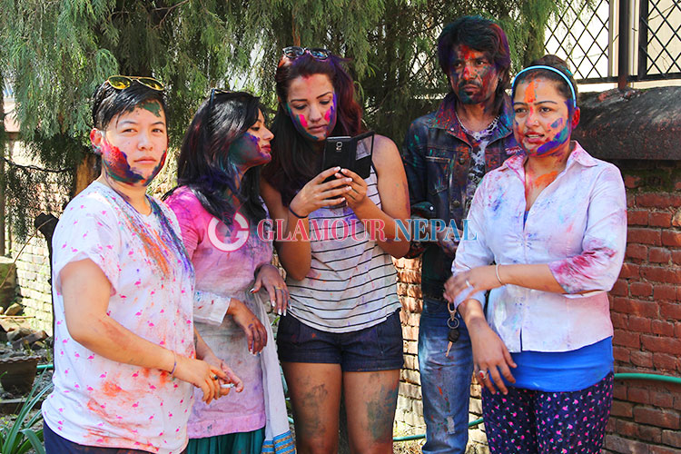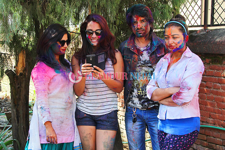 Actress Rekha Thapa, Keki Adhikari, Priyanka Karki Celebrating Holi 2015 in Kathmanu, on the occasion of festival some filmy journalist also seen enjoying Holi with Actress. all the images by Maheswor Man Singh / Glamour Nepal