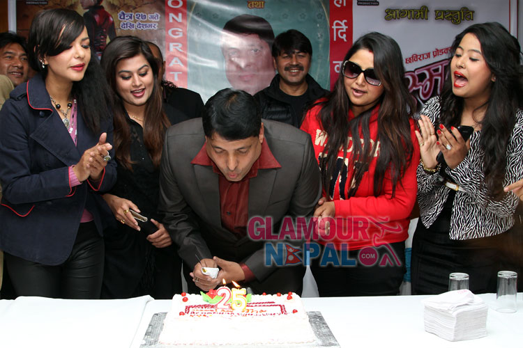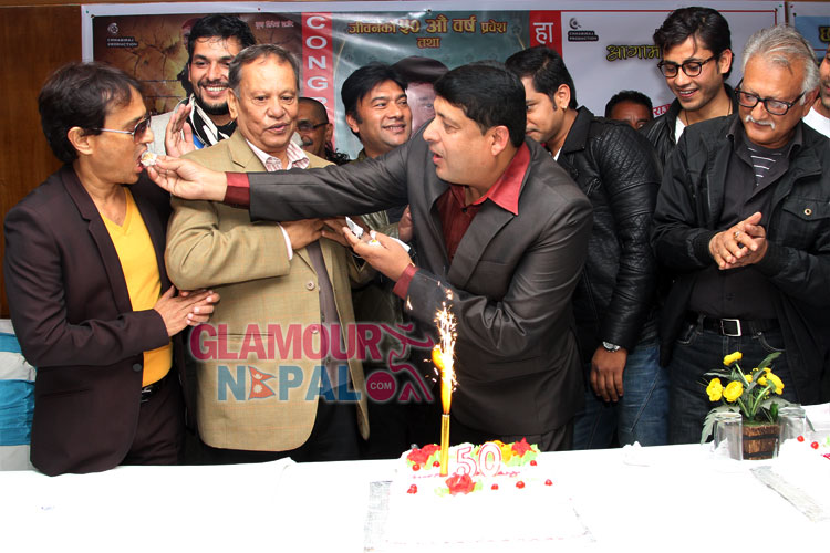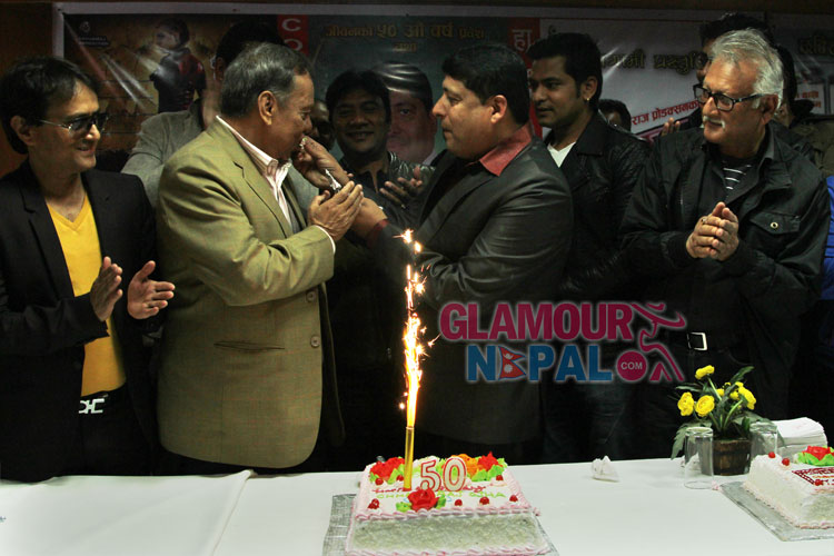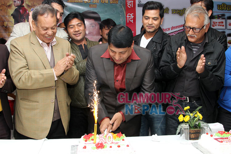 Producer Chhabiraj Ojha celebrated his 50th birthday amidst a program in Kathmandu. He also cut cake celebrating his 25 years of journey in Nepali film industry.