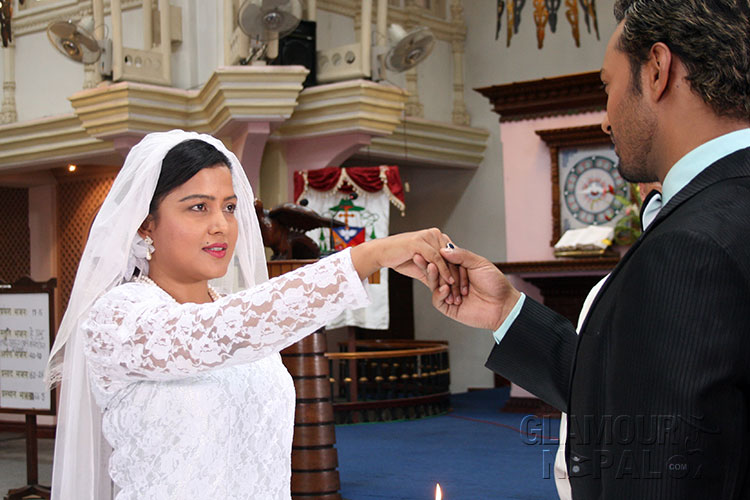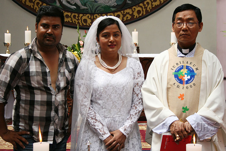 They tied nuptial knots at a church in Jawalakhel. Both were seen happy making each other as life partners. They did marriage for a scene of the film ‘Tathastu’ to be released on Poush 25.Currently the post production of the film is underway at Red Studio. Kishor Khatiwada and new artist Bigyan Joshi have acted in the feminist action movie.