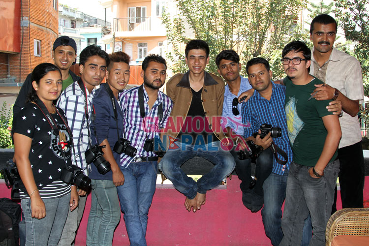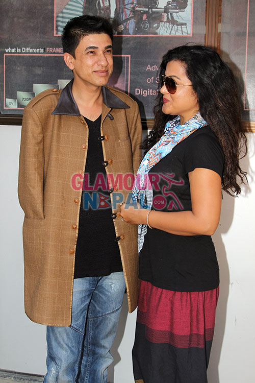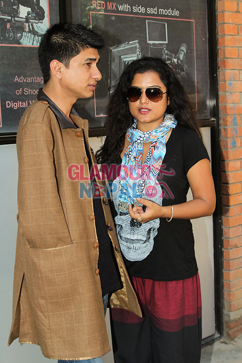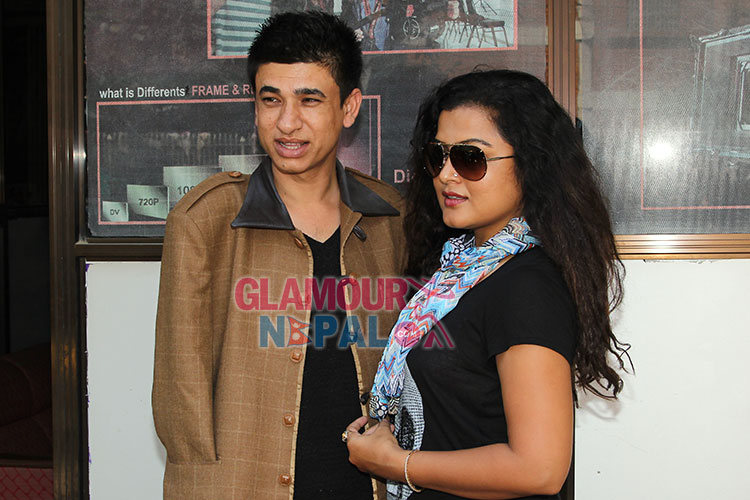 Himmaltwali Couple Rekha Thapa and Sudarshan Gautam; Recently Actress Rekha Thapa and Sudarshan Gautam Taking pictures during the promotional get together program for her upcoming movie HIMMATWALI in kathmandu. The Movie is releasing in cinemas on 1st October 2014 (15th Asoj 2071). images by Maheswor Man Singh / Glamour Nepal