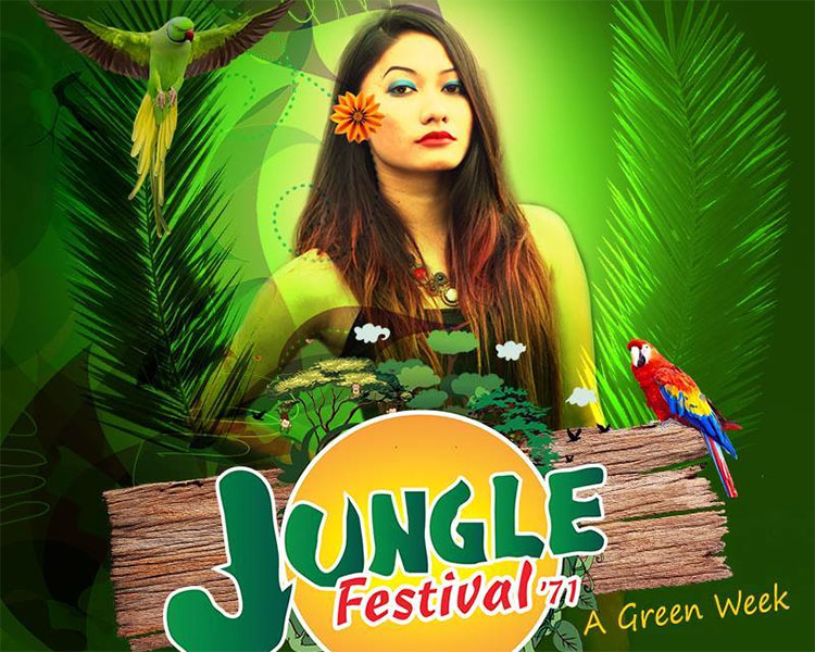 A week long Jungle festival been started from February 13 2015 in Shanti Ban Batika of Pokhara has witnessed a refreshing and worth watching fashion show. With dozens of times watching the models in the closed arena or even some times in the open venue but this time it was totally different and in the mid arena of the Jungle. With the background music being complementing with the theme executed by the models on the stage had various attires given the form of Jungle look having the representation of birds, animals, flowers, insects, tree branches, leaves and other details that gave the attires carrying the life and scenario of a Jungle.