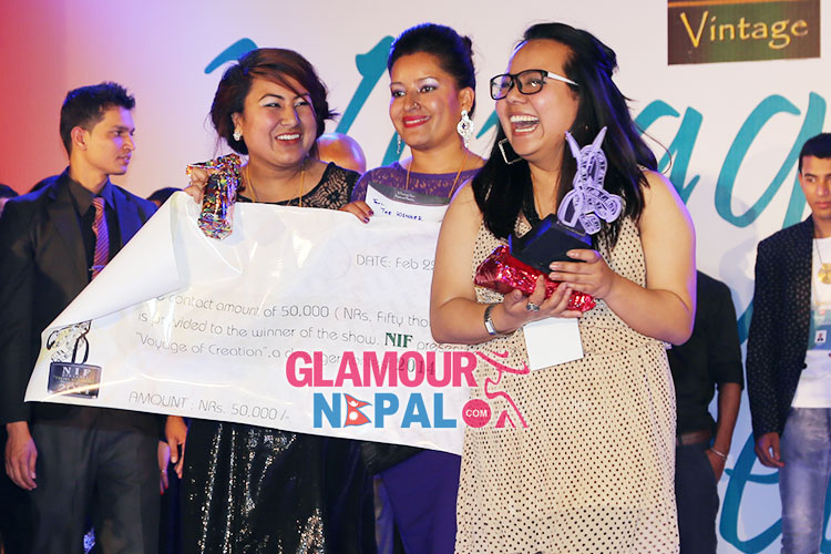 With the competition coming to the end top three winners were been declared. The second runner-ups designer was Shreesha Sapkota who presented her designs under theme, color of life. With the exploration of colors like white representing purity, other different colors signifying different aspects of life and the color black to represent the end of life. Anchu Pandey was been declared as the first runner-ups. Her creativity was the blend of trash and fashion being the Trashion. The theme was focused on pollution and global warming signified with the utilization of plastic bags, plastic cups, metallic chains, paper, thread, cd pieces etc.