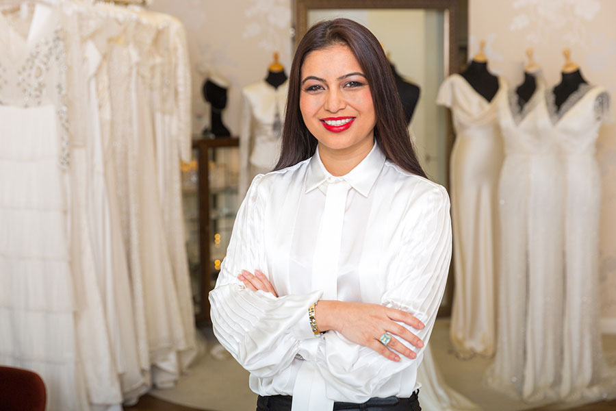 Her collections from haute couture to ready to wear are available online and at her London and Lincolnshire ateliers, with bridalwear available through select UK stockists.