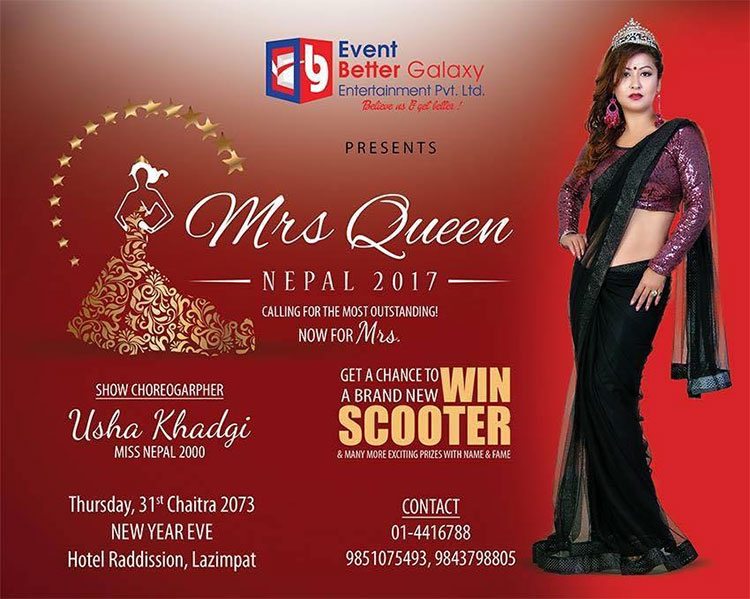 According to the organizer, the winner of the event would ride away with a brand new scooter as the reward. The grooming session and choreography of the event would be handled by former Miss Nepal 2000 Usha Khadgi.
