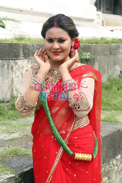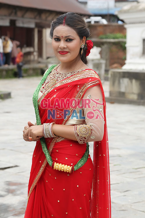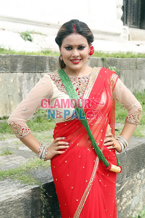 Watch Singer Sunita Dulal’s Gorgeous Looks in Saree pictures clicked on 15th of July 2014. all images by Maheswor Man Singh / Glamour Nepal