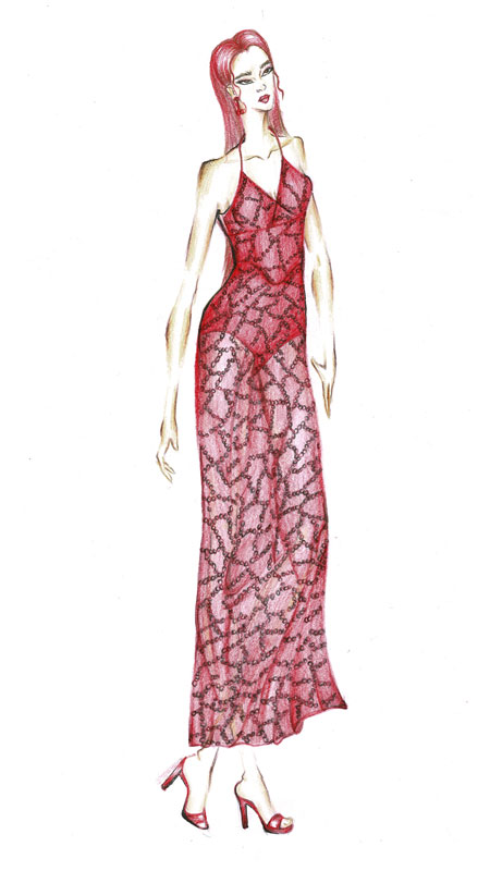 This is a summer wear inspired from retro muse. It is a straight silhouette ankle length, fitted at bust to hip and loose downwards. It has a deep cut halter neck design tied up with stripe at the neck. It is suggested to wear on summer parties and also would go for the valentine mood. The satin and net fabric is used for this dress. The satin fabric enhances the net fabric. The net fabric is full of thread embroideries. The dress is transparent from hipline. This type of dress is suitable for both the teenage and adult ladies. The color of dress is red; suitable for all color complexion. The dress is stylish and elegant suitable for the apple shaped body type. This style would be better to team up with a pencil red pointed heel and a cherry shaped earing. The hair style can be kept simple and straight which would complement with the dress.