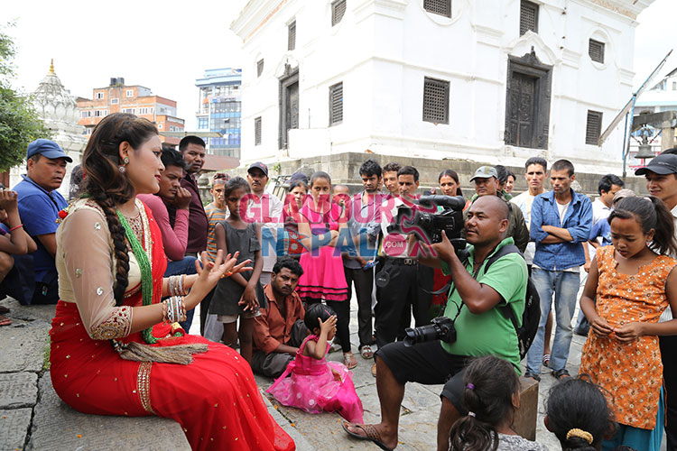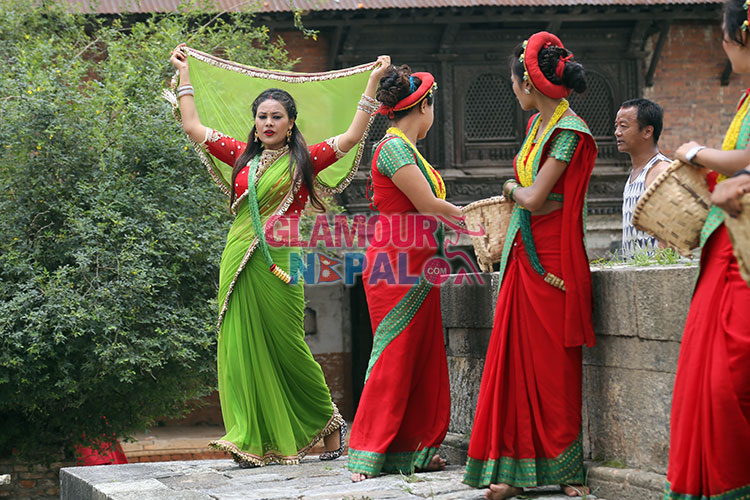 Singer Sunita Dulal caught in music video shooting location on 15 july 2014. Music Video Directed by Govinda Rai and Cinematography by Shivaram Shrestha. all images and Video by Maheswor Man Singh / Glamour Nepal