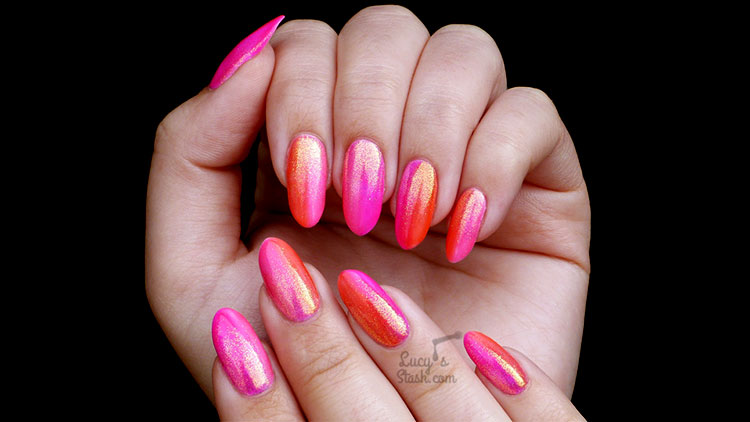 To create the mermaid glitter effect, first it’s recommended to coat your nails with white crème gel polish because it makes neon colors to appear brighter. Then, paint your nails in two halves with different colors to create the gradient effect. Use a brush to blend it. When you’re done blending, apply a special nail polish for mermaid effect and last step is covering the nails with topcoat. You can use other colors if these aren’t your thing!