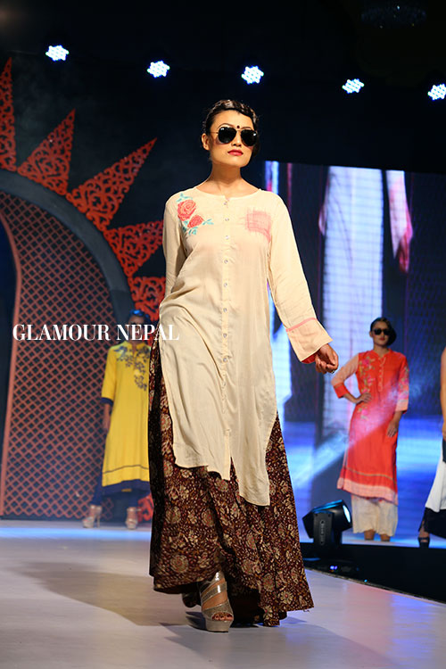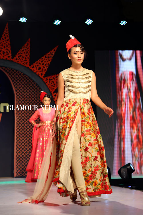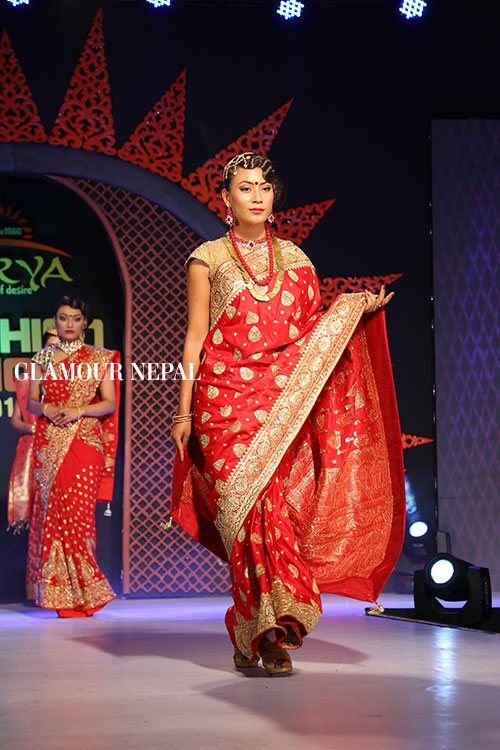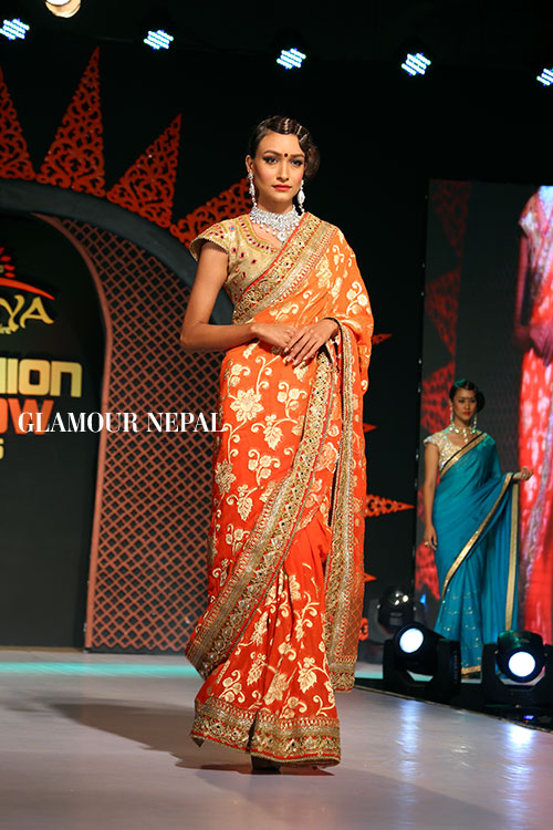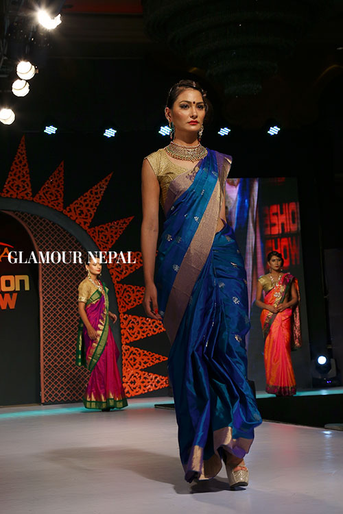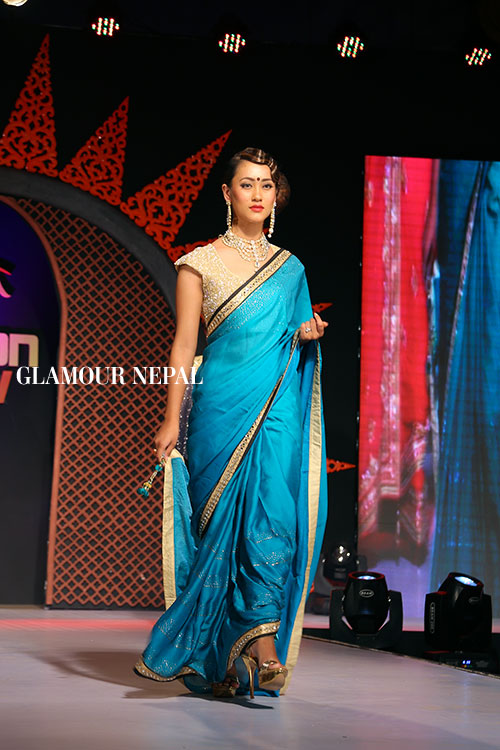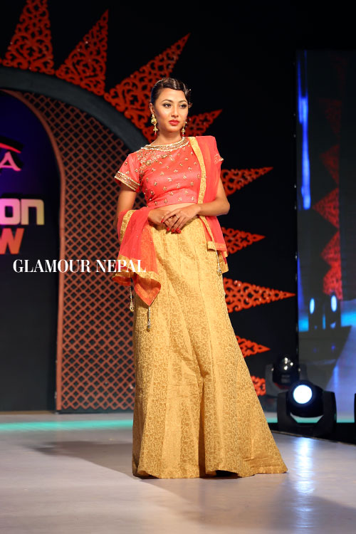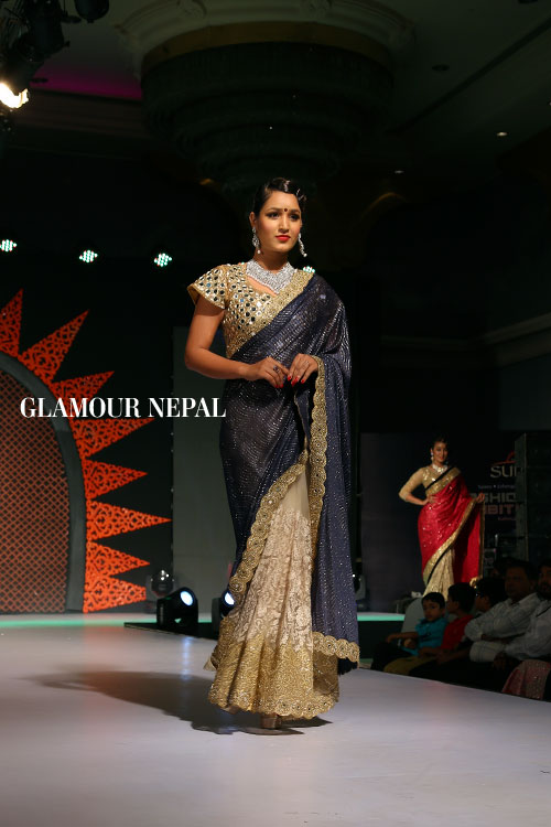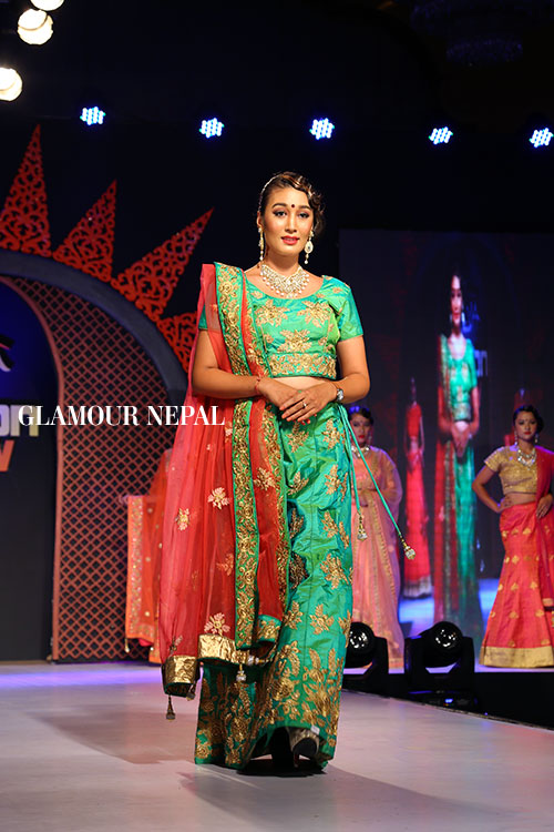 16 Nepalese Models shows the exclusive Sari, Kurti, Lehenaga In the fashion show. The fashion was choreographed by Aaysuhsi Shah and the event managed by Bikash Khatowada from the Innovative Entertainment Pvt Ltd.