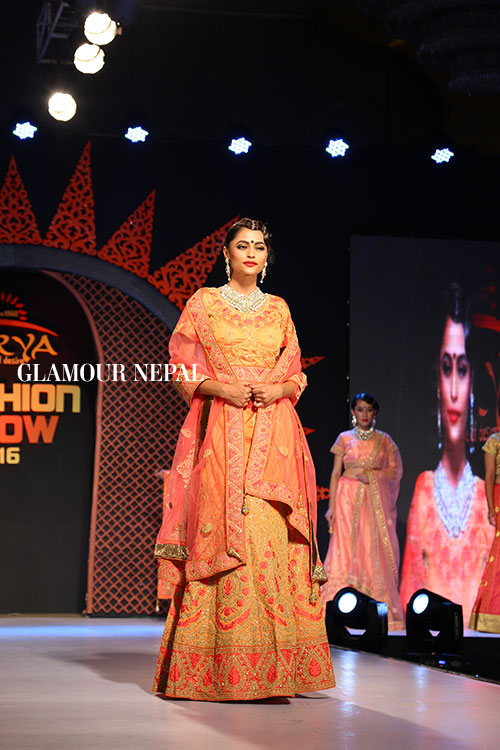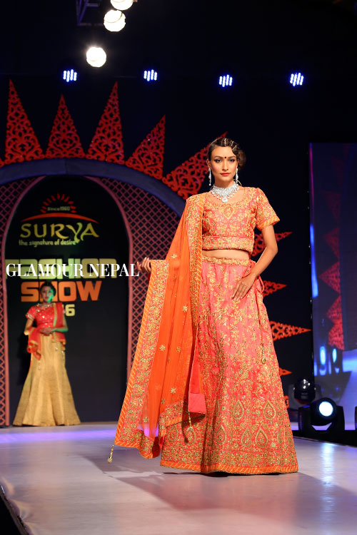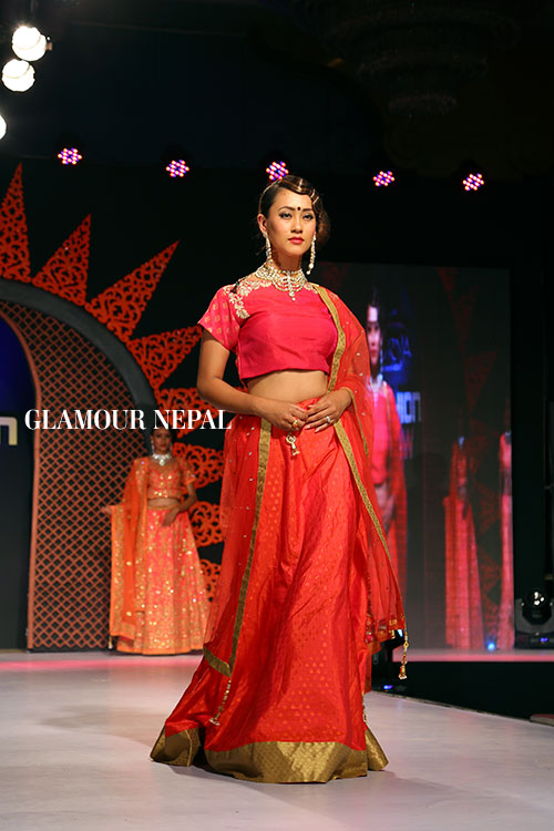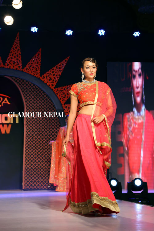 Super Model Aastha Pokharel shines on the runway with the Indian style colorful embroidery lehenga. On the runway, she was seen as a show stopper and presenting an exclusive lehenga of an Indian brand SURYA.