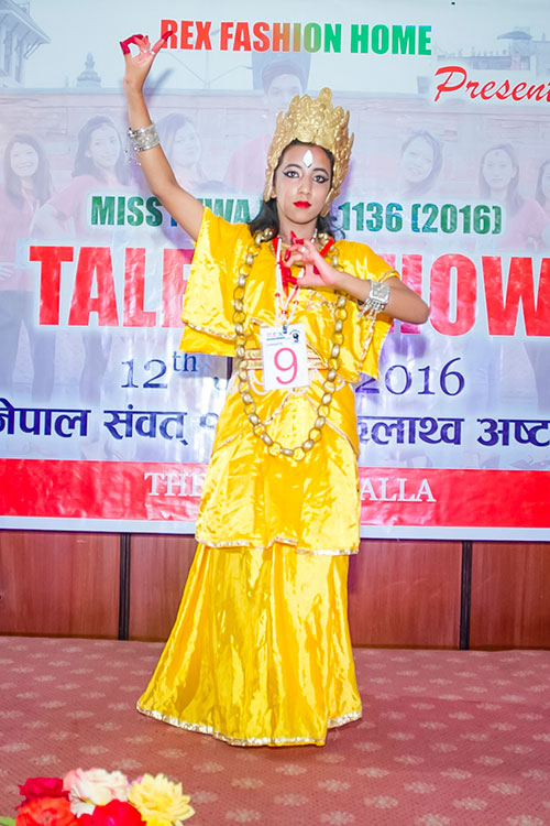 Judges were enjoying varieties of dance – Kumari Dance, Dhime Dance, Charya Dance, Manjushree Dance, Bajrayogini Dance, Jyapu Dance and others. it was talent round task where fifteen finalists of Miss Newa Icon 2016. The contestants were found giving their best performance to impress the panel of judges.