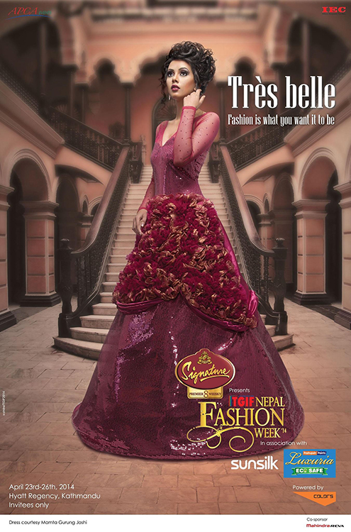 Nepal’s Biggest Fashion Week “The Himalayan Times TGIF Nepal Fashion Week 2014″ is going to be held on April 23rd to 26th of 2014 at Hotel Hyatt Regency, Kathmandu. Here are the images of The Himalayan Times TGIF Nepal Fashion Week 2014 Promotional Campaigns.