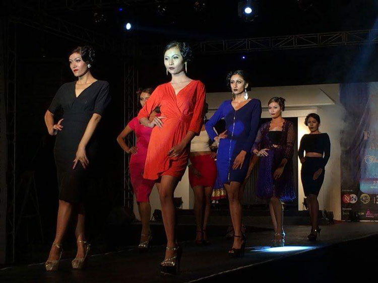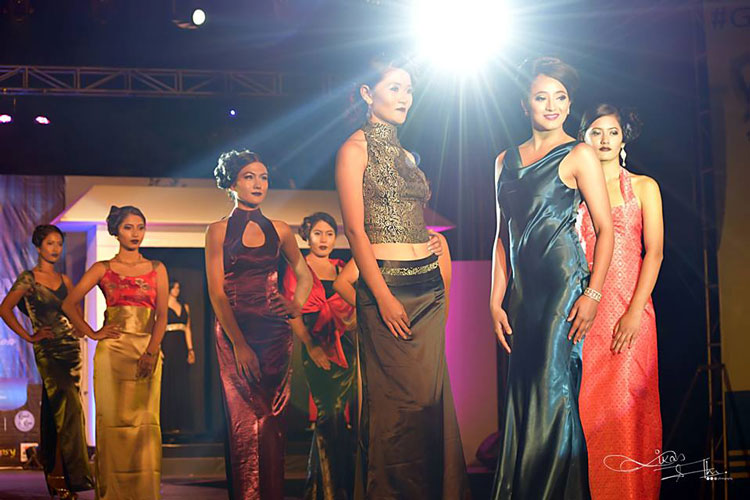 The dresses flaunted were from traditional styles of Lehenga cholis to sophisticated evening gowns, evening wears to party and cocktail range of dresses. The knee length attires to casual winter wears all came lively on the runway as been directed by duo choreographers of the event Priya Rani Lama and Barsha Thakali.